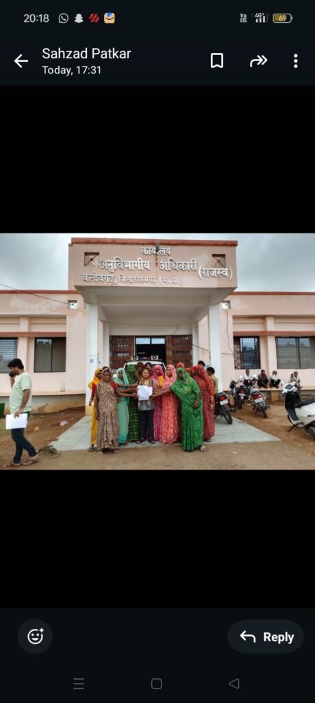 बल्देवगढ़ आदिवासी बस्ती महिलाओं एवं पुरुषों ने एसडीम सोपा ज्ञापन कहां हमारी हमारी परंपरागत रास्ता मंडी के ठेकेदारों द्वारा बंद किया गया हैं यदि यदि हमारा रास्ता जल्द कार्रवाई नहीं हुई तो हम लोग उग्र आंदोलन करेंगे क्योंकि 200 आदमियों का परिवार मोहल्ला निवास करता है हमारे बच्चों की पढ़ाई लिखाई गहरा असर पड़ रहा है और में बल्देवगढ़ आने-जाने रास्ता घूम कर जाना पड़ता है बच्चों की पढ़ाई लिखाई बुरा असर पड़ रहा है जिला प्रशासन एवं मध्य प्रदेश सरकार मांग की है परंपरागत 1410 1409 खसरा नंबर है परंपरागत इन्हीं रास्तों से कृषि खेतों तक जाते एवं पढ़ाई लिखाई की है लिए मात्र यही रास्ता है सरकार आदिवासियों हितों का डॉल पड़ती है आखिर अन्याय क्यों हो रहा है